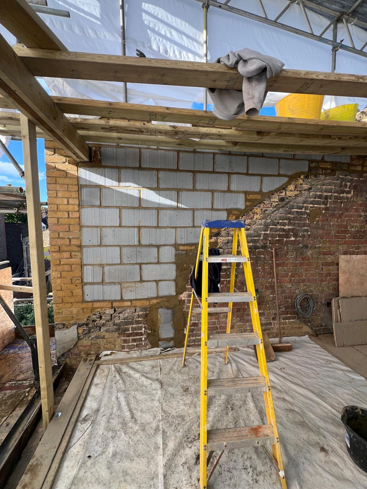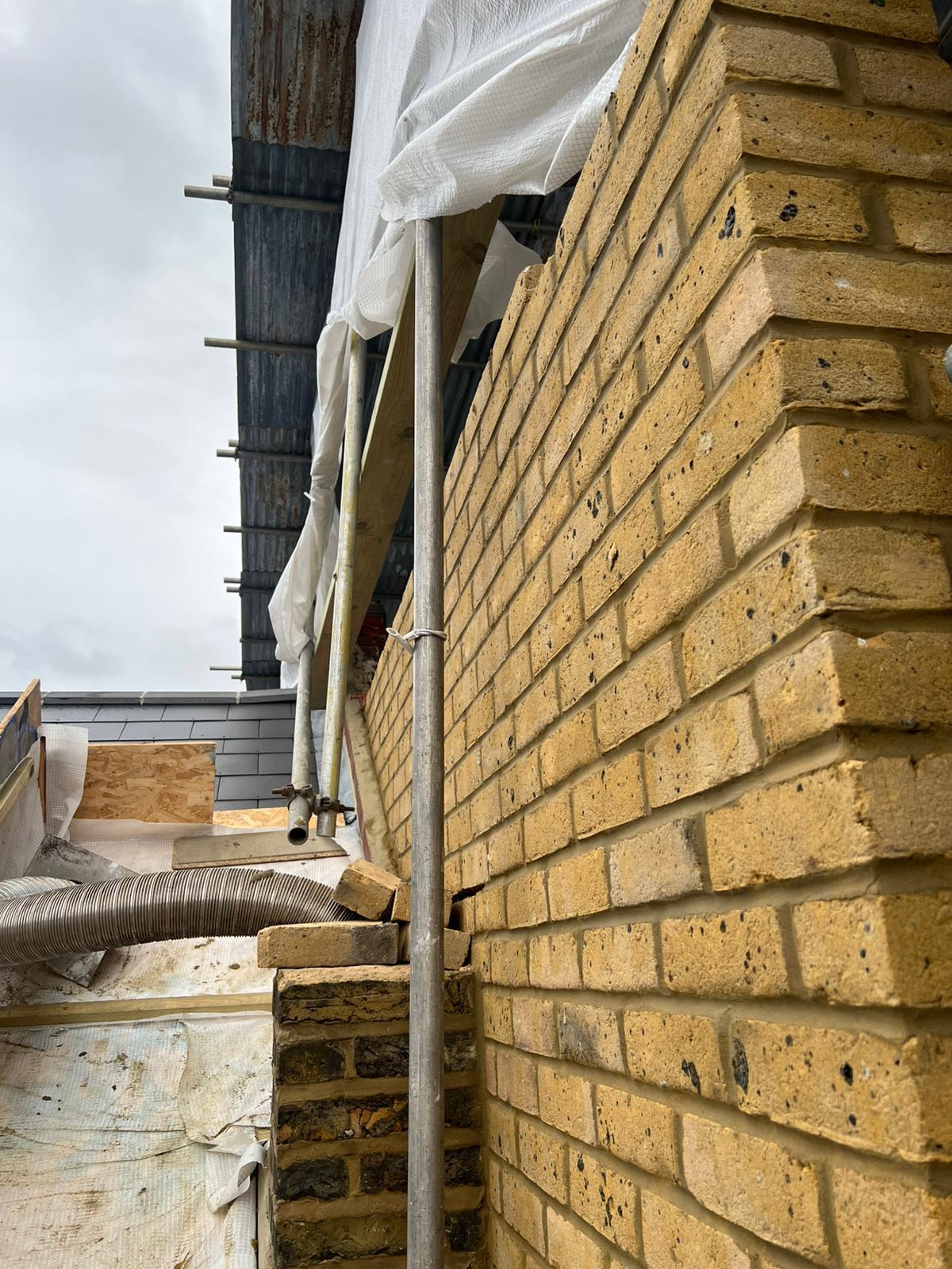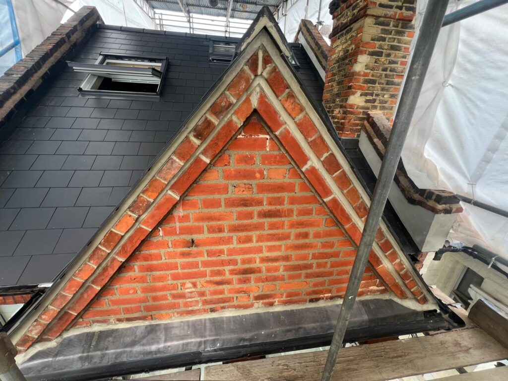 The back part of most loft conversions is where the real space and ceiling height is gained, this is where a flat roof can be installed. Councils will very rarely allow you to put a dormer or mansard roof onto a loft conversion unless there is precedence in your area for it. At the rear of a house there is more scope for changing the look of a house. We built a side wall on top of the existing gable end wall, changing the height and the pitch of the wall. This wall was built of London Stock bricks and Ecotherm insulated structural blocks. The rear flat roof can then be built off this wall.