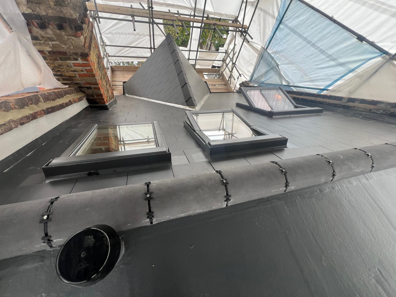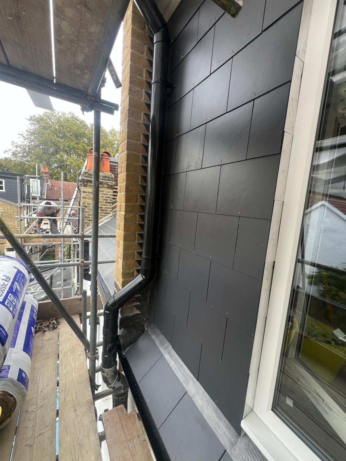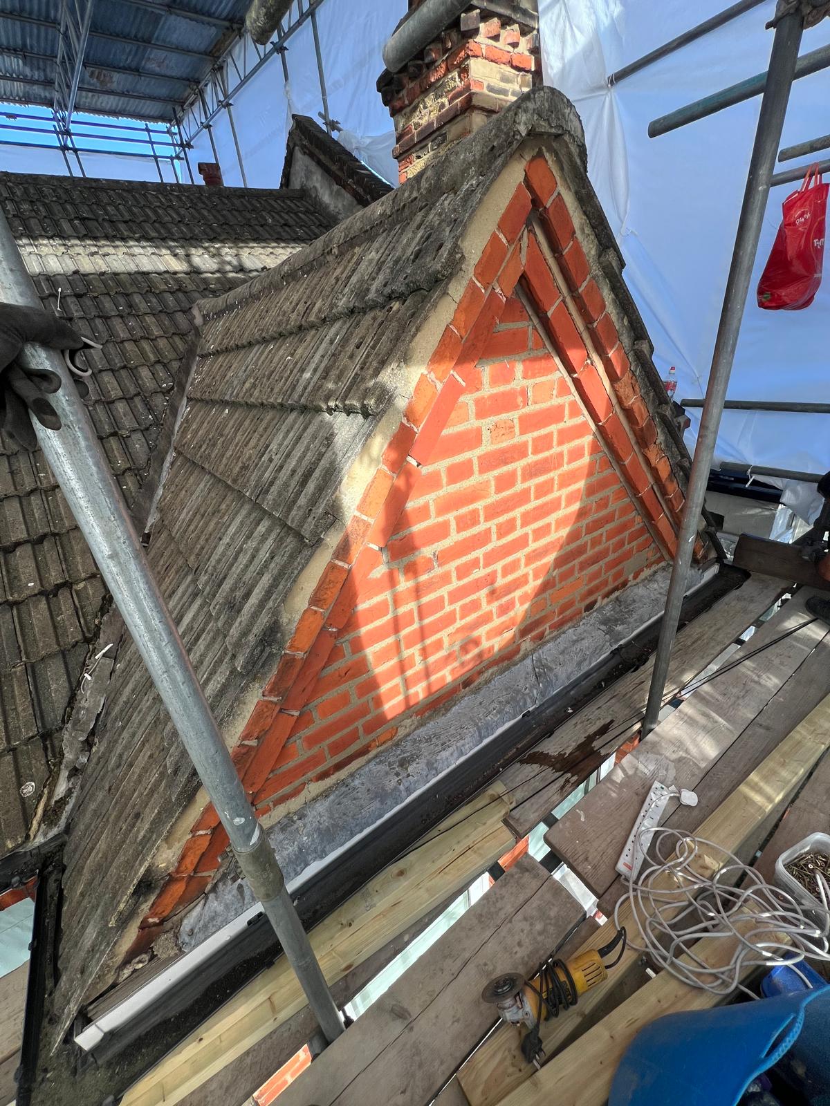 The back part of most loft conversions is where the real space and ceiling height is gained, this is where a flat roof can be installed. Councils will very rarely allow you to put a dormer or mansard roof onto a loft conversion unless there is precedence in your area for it. At the rear of a house there is more scope for changing the look of a house. We built a side wall on top of the existing gable end wall, changing the height and the pitch of the wall. This wall was built of London Stock bricks and Ecotherm insulated structural blocks. The rear flat roof can then be built off this wall.