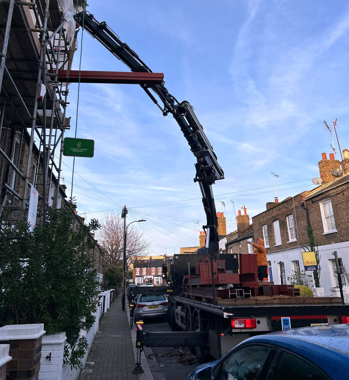 Structural integrity is the foundation of a successful loft conversion. For this project, we’ve installed four RSJs (Rolled Steel Joists) to support the new floor and roof structure. A lorry stationed outside carefully lifted the steel beams into place, ensuring safety and precision throughout the process.