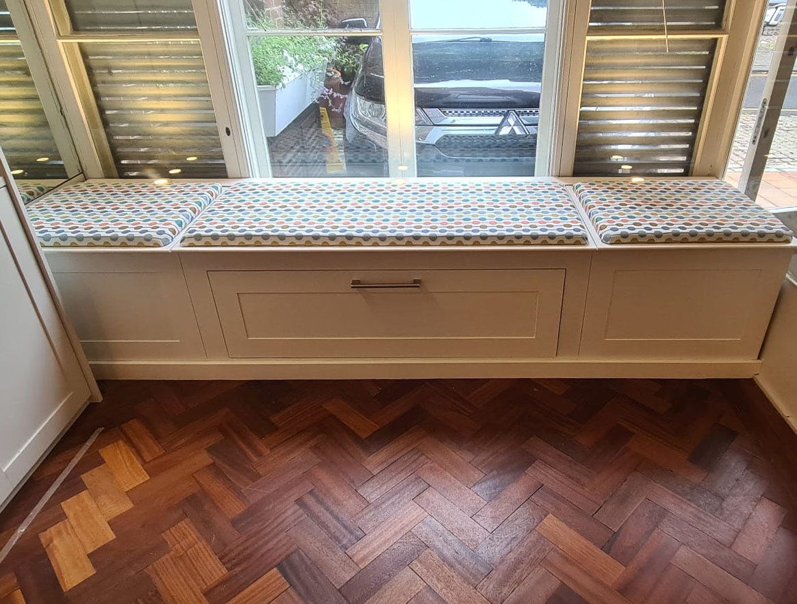 Our built-in bench seat is a multi-functional marvel that turns your living room from a children’s play area into a charming entertainment space and then back again. With ample storage solutions cleverly concealed within its design, it fits seamlessly into your decor. Positioned by the window, it invites you to sit, relax, and enjoy the view, all while keeping your space tidy and stylish. Which spaces in your home do you think could benefit from WLP’s Joinery solutions.